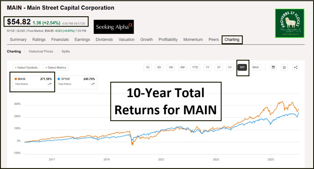 Both AVGO and MAIN have a good track record for delivering to their shareholders. A substantial portion of MAIN’s total returns come from dividends.