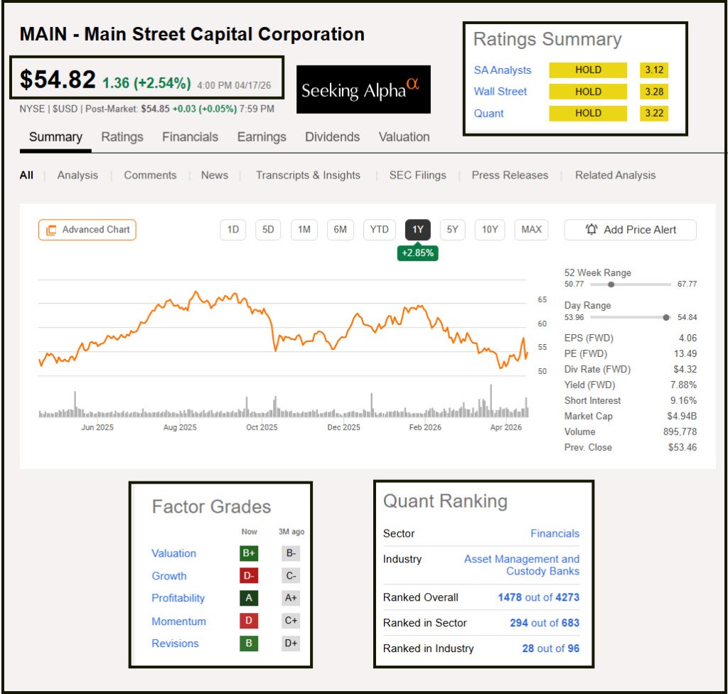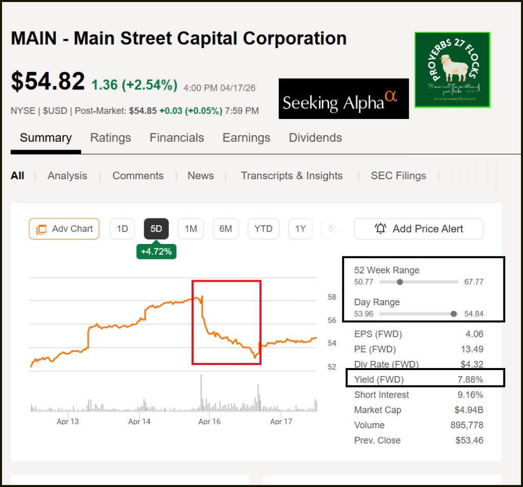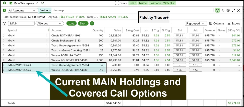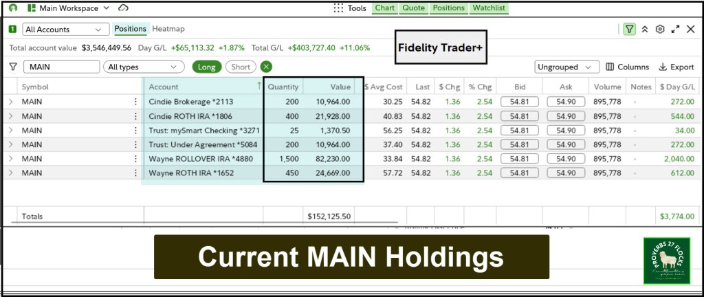 Investing well requires emotional stability and paying attention to the price of the shares. That is one reason I set alerts. I want to be aware so that I can respond without irrational emotional responses. Today I will look at two decisions I made yesterday. One involves MAIN and the other involves AVGO. MAIN had moved down significantly in price, and AVGO was charging up over $400 per share.