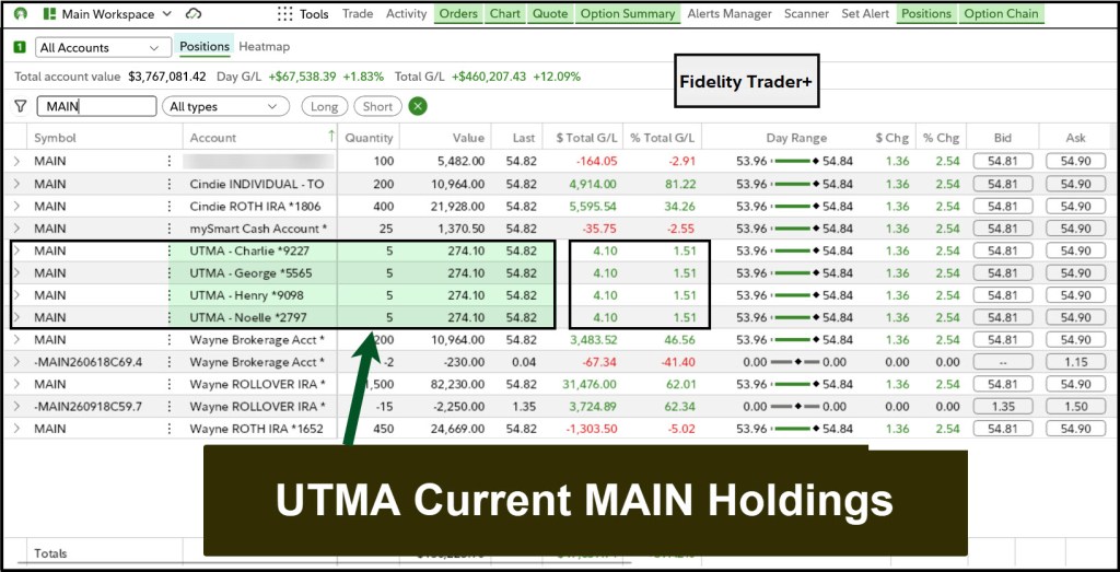 I used “Buy Limit” orders to buy the shares. As a result, all of the shares were purchased for $54 per share. The closing price yesterday was $ 54.82, so apparently others felt the same way I did. The other nice thing about this BDC is that it pays a monthly dividend. If the price drops again, I will seriously consider adding some more shares to the UTMA accounts.