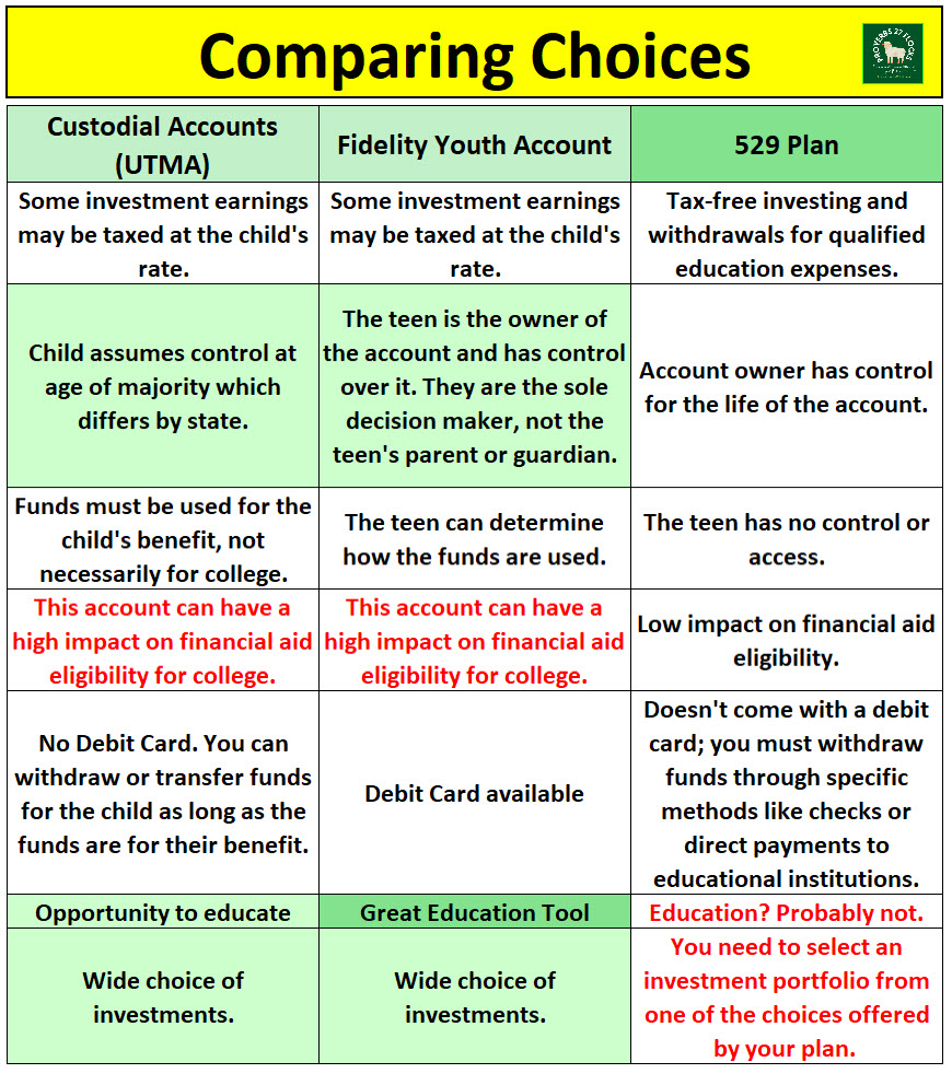 As a result of this conversation, another Fidelity client asked this question: “How did the Youth accounts differ from a UTMA account? I opened UTMAs for each grand kid shortly after birth as soon as they got their SSN’s. They are all brokerage accounts which I fund with gifts on birthdays, Christmas graduations, monthly auto transfers, etc. The oldest is now 18. When they reach the age of majority (differs by state) the account converts to a regular account. I haven’t tried to order a debit card for any of the accounts, but I thought about it for the oldest who will be in college next year. Age of majority is in PA is 21. If I can’t open a debit card, maybe that is a difference.”